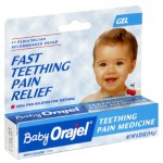 After doing some research I discovered that Baby Orajel is not good for babies at all. The numbing ingredient, Benzocaine, can cause the baby to choke because they cannot feel the back of their throat. So I chose to get Hylands Teething Gel, Teething Pellets, and Camilia Teething Gel. I felt that as long as we went with homeopathic products that it was OK to use them as needed, compared to if we used Orajel, which has restrictions due to the chemical ingredients. We