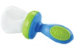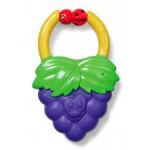 We have a bunch of different teething rings/devices but in the end he seems to prefer his fingers to gnaw on with his gums. A friend gave us this teether that vibrates and looks like a bushel of grapes but with a handle and plastic – he uses that the most. It must be something about the