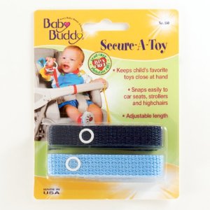 I brought a variety of toys – most, if not all, were on strings (secure-a-toy – pictured here) so I could hold onto it before it fell onto the NASTY floor of the airport and/or airplane! Bring a toy or two that they’ve never seen as it will be something new and exciting and worth it’s money in gold for the amount of time it will entertain them! Books, teethers, shakers, etc.