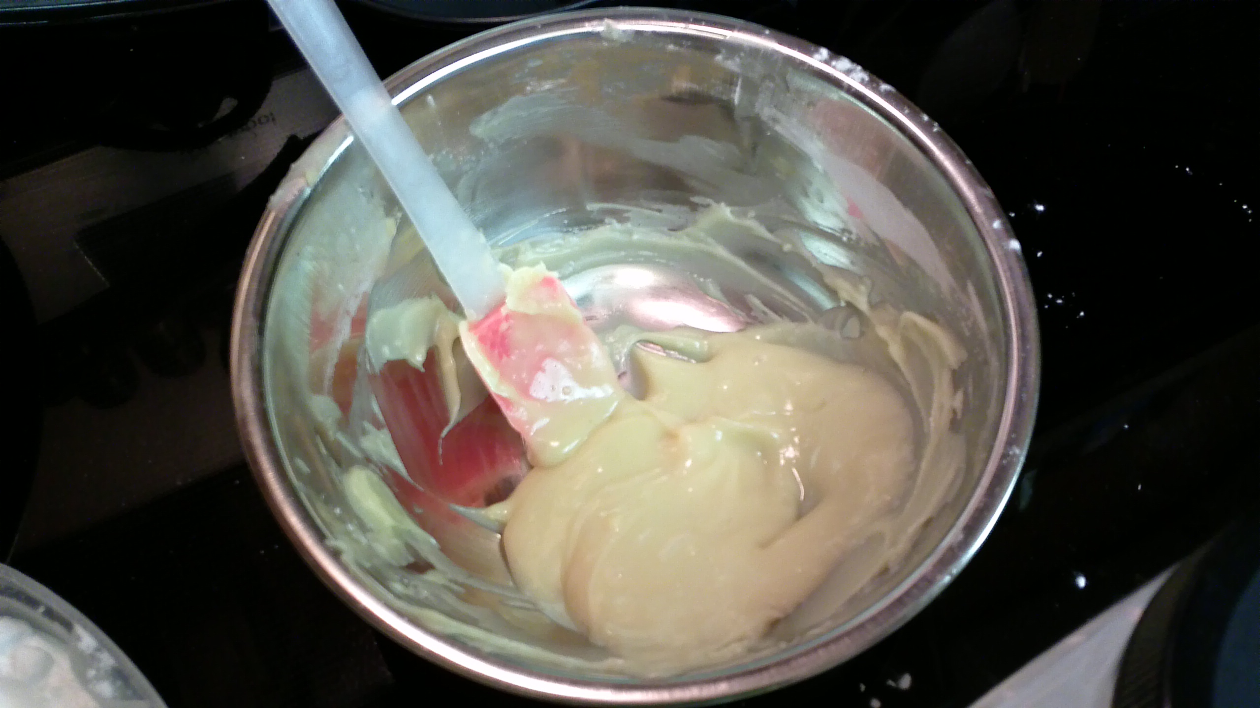 2.  Let cool slightly, then add the powder, vitamin E, essential oils and stir with either chop sticks or a whisk.